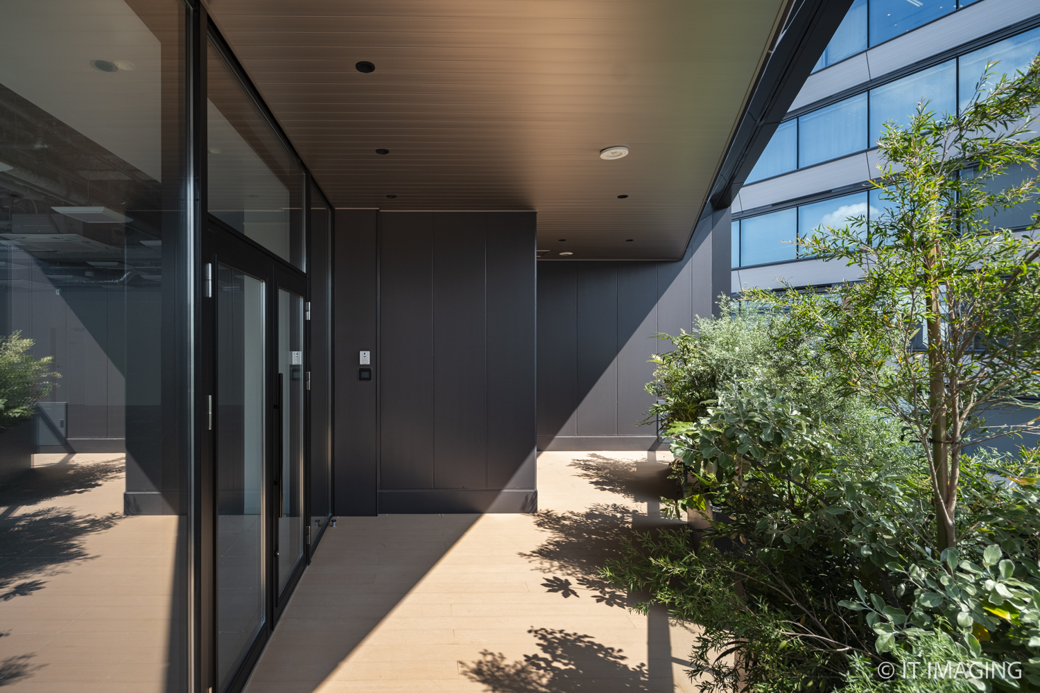 各フロアに設けた外部バルコニーは、内と外をゆるやかにつなぐ「間」として計画し、働く場や交流の場となると同時に、日本建築の「庇」のように季節ごとの日射を調整する役割も担っています。