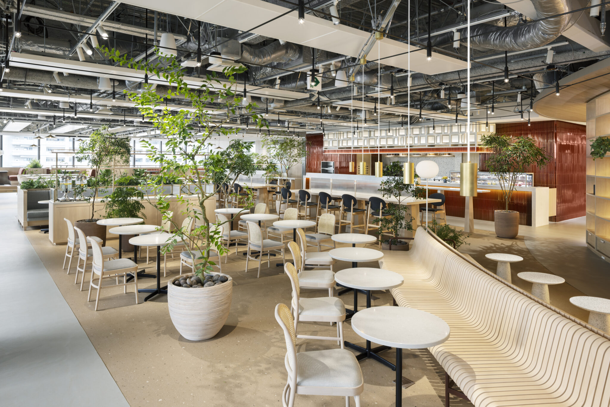 Designed as a "Delicatessen & Cafe" that balances the comfort and convenience of both a corporate cafeteria and a casual dining spot, the café responds to today’s diverse needs—such as the ability to eat at flexible times and access to healthy food. Through both its spatial design and operations, ARUMON CAFE fosters communication and a sense of community among employees.