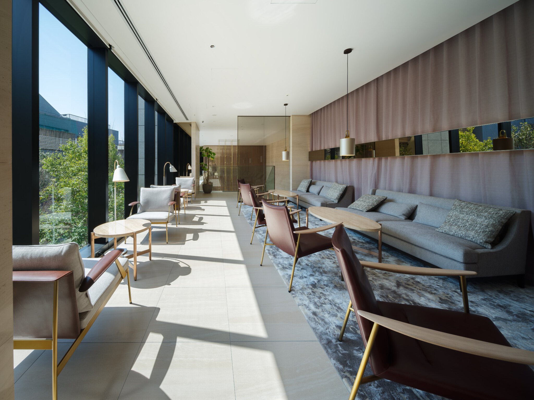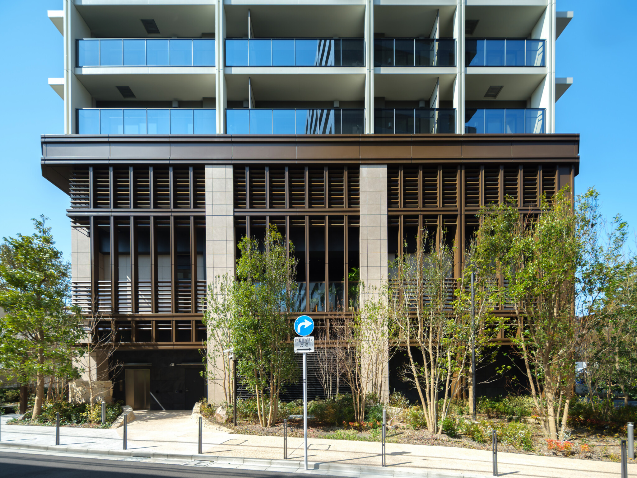 日鉄興和不動産が手がける都心型高級賃貸レジデンスの、ファサード基壇部・外構、そして共用部インテリアのデザインを担当しました。